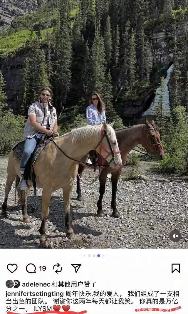 从谢婷婷的留言中看,她很满意现在的生活状况。晒出照片是两人在户外一起骑马,笑容很甜蜜,狠狠给网友们来了一波狗粮。