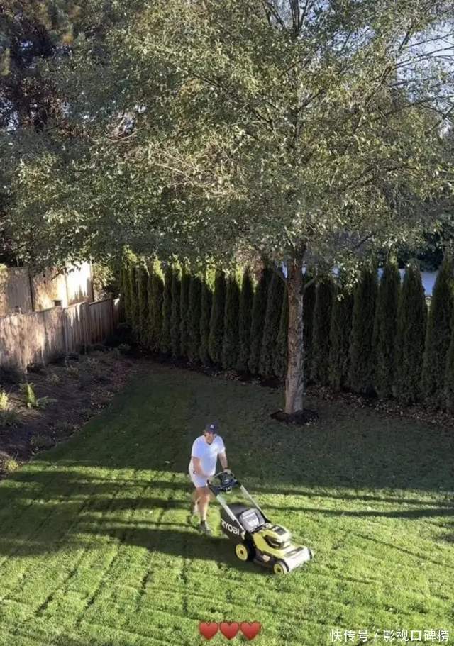 Mathew亲自修剪院子里的草坪呢,可能没有聘请专门的人打理。