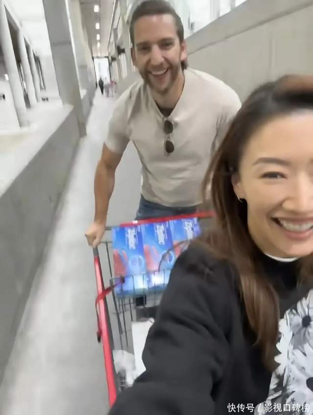 谢婷婷与外籍男朋友Mathew去超市购物,她坐在购物车上,外籍男友Mathew推着她笑得很开心。一看就知道,谢婷婷被宠成了公主。