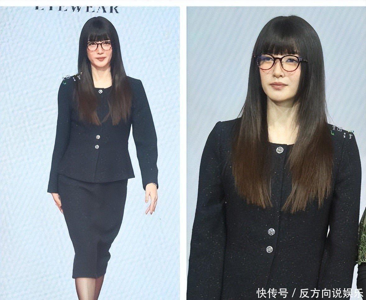 她这次不仅在穿着打扮上来了个彻底大变样,直接大胆尝试了西装配黑丝,还剪了齐刘海、戴上眼镜,玩起了火辣女教师的造型。