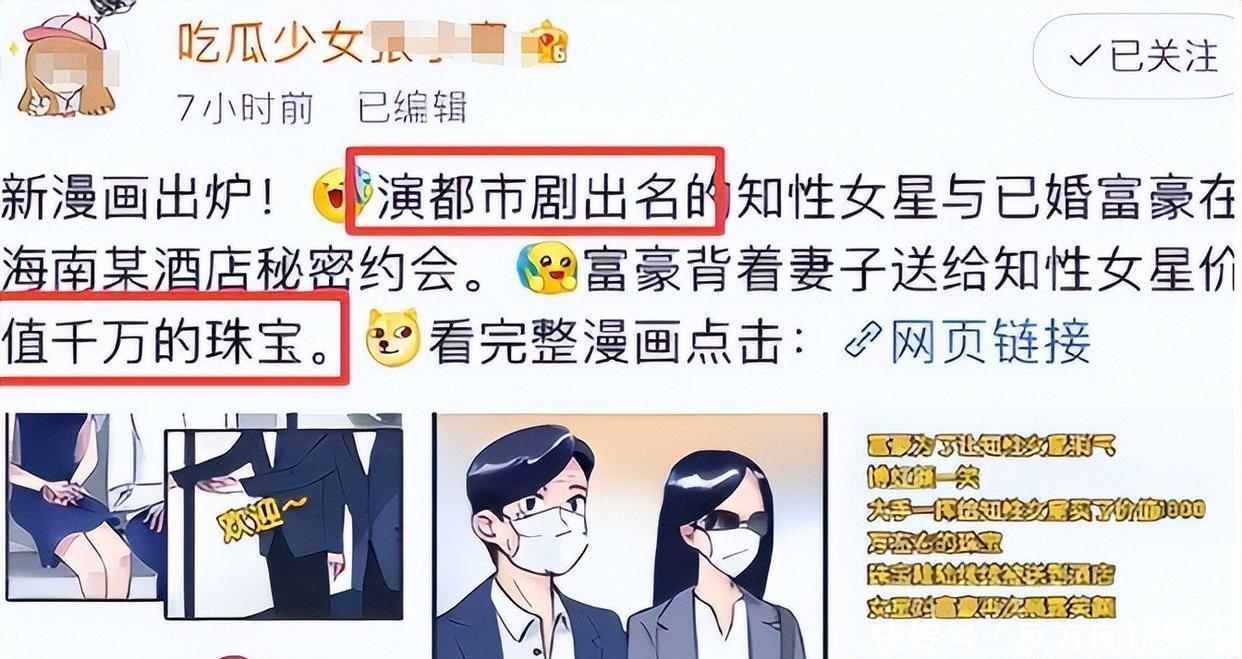 原本大家都觉得她可能是太看重事业了,直到有个有名的娱乐记者爆出娱乐圈的重磅消息,大家这才好像恍然大悟。那则爆料中说,有个常演都市剧、在娱乐圈以知性形象闻名的女明星,居然跟一位已婚富商在酒店偷偷见面。